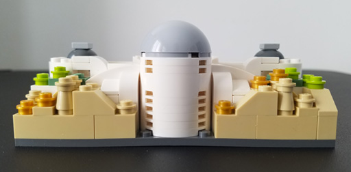 While planning & waiting for part orders on the larger build, I put together a quick micro-build version of Griffith Observatory (minus the landscape & right cafe/deck area). Seemed to turn out pretty well and the frontside-top more closely resembles the real building than the larger model I’m putting together.